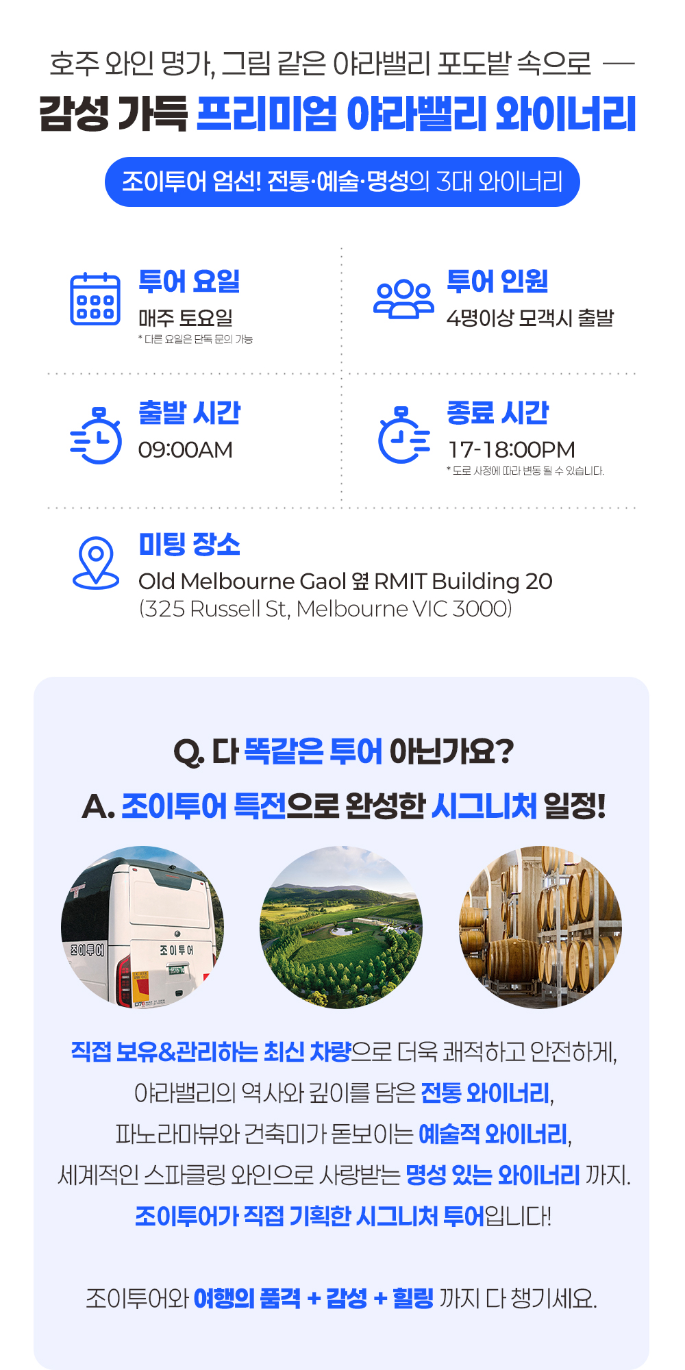조이투어의 전문 한인 가이드와 함께 멜버른 최고의 와인 감성과 로컬 분위기를 한 번에 경험해보세요♥