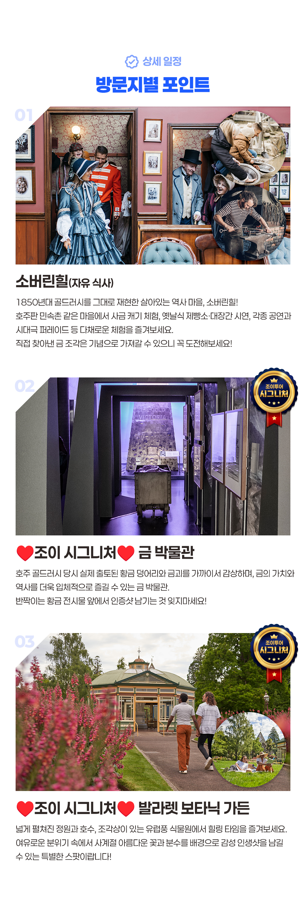 호주 멜버른 멜번 자유여행 데이투어 여행 필수코스 명소 베스트 관광지 가볼만한곳 추천여행지 패키지여행 경비 일정 후기 꿀팁 감성 사진 SNS 인생샷 인스타그래머블 조이투어 근교투어 발라렛 소버린힐 역사마을 체험형 민속촌 테마파크 사금채취 금광 광산투어 19세기 코스튬 군인쇼 대장간 시연 금박물관 보타닉가든 골드러시시대